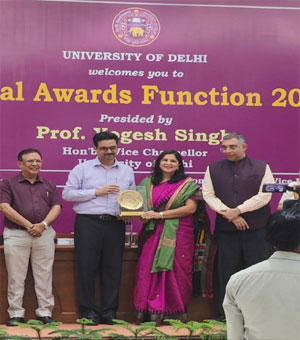 Dr. Anjali Sharma Kaushik received Excellence Award for Teacher in Service in Colleges under age 45 years by University of Delhi